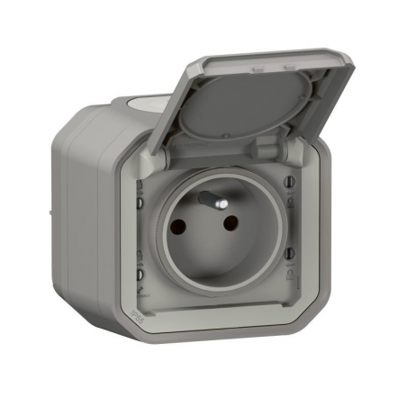 Marque: LegrandRéférence CME: LG069731LEAN: 3414971882072Description: Prise de courant 16A - 2P + T - 250V - simple avec bornes automatiques - IP55 - IK08 - complet avec boîte de montage - gris