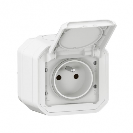 Marque: LegrandRéférence CME: LG069781LEAN: 3414971882768Description: Prise de courant 16 A - 2P + T - 250V - simple avec bornes automatiques - complet avec boîte de montage - IP55 - IK08 - blanc