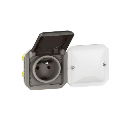 Description: Plexo with Netatmo Prise connectée 2P +T horizontal - livré sans boîte de montage en surface ou cadre encastré (2 mécanisme) - IP55 - anthracite