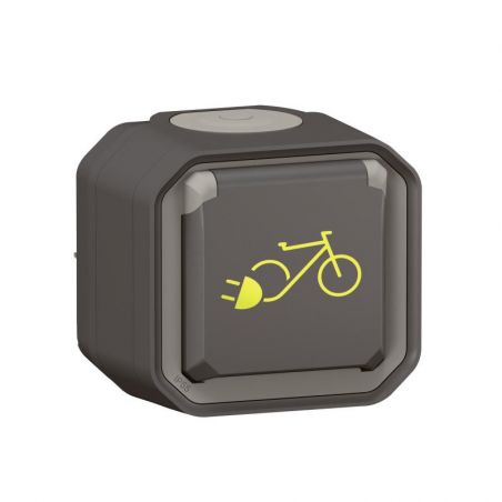 Marque: LegrandRéférence CME: LG070077EAN: 3414972310536Description: Plexo prise de courant de recharge vélo - appareil complet avec boîte - IP55 - anthracite