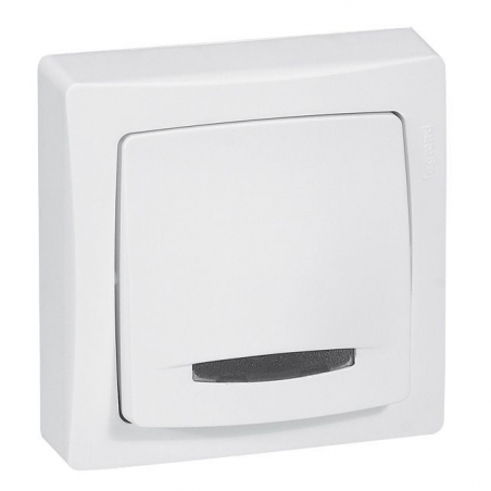 Marque: LegrandRéférence CME: LG086005EAN: 3245060860059Description: Oteo poussoir à voyant - 6 A - 250 V - contact à fermeture (NO) - complet (mécanisme + cadre saillie) - blanc RAL 9010 - mécanisme IP 2x