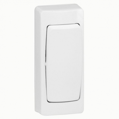 Description: Oteo compact interrupteur deux directions - 10 A - 250 V - complet - blanc RAL 9010 - IP 2x protégé contre les contacts directs - livré bornes ouvertes