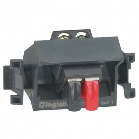 Marque: LegrandRéférence CME: LG086139EAN: 3245060861391Description: Oteo prise haut-parleur - avec bornier de raccordement rapide - composable (pour montage du mécanisme dans un cadre saillie ou cadre DLP)
