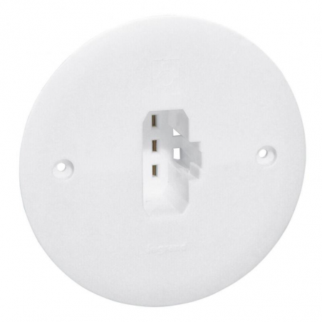 Description: Batibox - boîtes d'encastrement pour cloisons creuses - couvercles DCL universels - pour boîte applique - diamètre 67 mm - se monte sur boîte batibox rondes