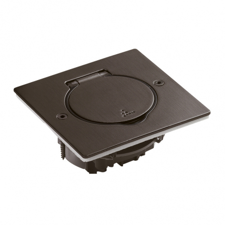 Marque: LegrandRéférence CME: LG089750EAN: 3414971485556Description: Platine de sol carré à équiper de 1 mécanisme Mosaic 2 modules -Acier brun brossé