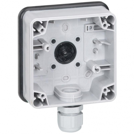 Marque: LegrandRéférence CME: LG090491EAN: 3245060904913Description: Plexo 66 composable boîtier 1 poste - gris - IP 66 - IK 08 - livré avec bouchon d'étanchéité - livré avec presse-étoupe M 20 (ISO)