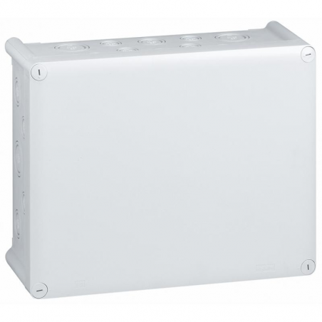 Description: Boîte de dérivation rectangulaire Plexo IP 55 - étanche - gris RAL 7035 - 36 entrées - fermeture du couvercle par 1/4 de tour - dimensions 310 x 240 x 124 mm