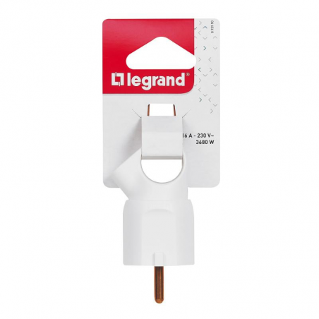 Marque: LegrandRéférence CME: LG093990EAN: 3245060939908Description: Fiche 2 P+T schuko Anneau blanc