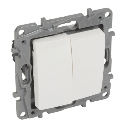 Marque: LegrandRéférence CME: LG396602EAN: 3245063966024Description: Niloé DIY inter 2 directions double 10AX 250V blanc à griffes