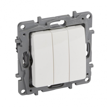 Marque: LegrandRéférence CME: LG396603EAN: 3245063966031Description: Niloé DIY inter triple 10AX 250V blanc à griffes