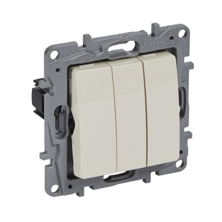 Marque: LegrandRéférence CME: LG396613EAN: 3245063966130Description: Niloé DIY interrupteur triple 10AX 250V crème à griffes