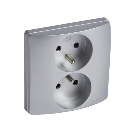 Marque: LegrandRéférence CME: LG397110EAN: 3414970303561Description: Niloé DIY prise 2x2P+T compact 16A 250V aluminium à griffes