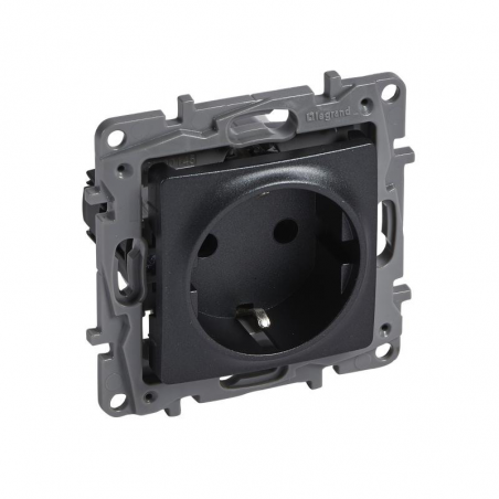 Marque: LegrandRéférence CME: LG397559EAN: 3414970303899Description: Niloé DIY prise 2P+T schuko 16A 250V anthracite à griffes
