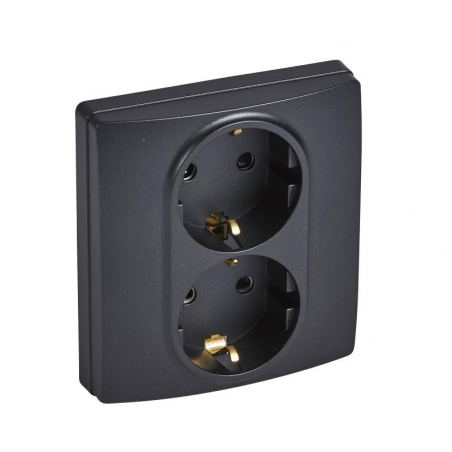 Marque: LegrandRéférence CME: LG397586EAN: 3414970303929Description: Niloé DIY prise 2x2P+T schuko comp. 16A 250V anthracite à griffes