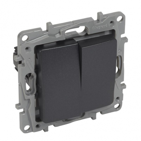 Marque: LegrandRéférence CME: LG397656EAN: 3414970304049Description: Niloé DIY inter 2 directions double 10AX 250V anthracite à griffes