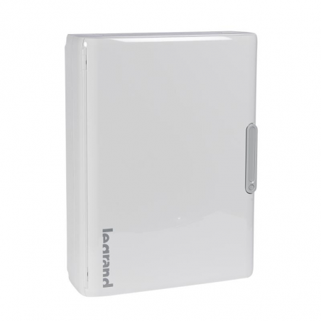 Description: Coffret saillie XL³ 125 - 3 rangées de 18 modules - 54 modules - avec porte opaque blanche - IP40 - IK 09 - blanc RAL 9003 - chassis extratible et pivotant