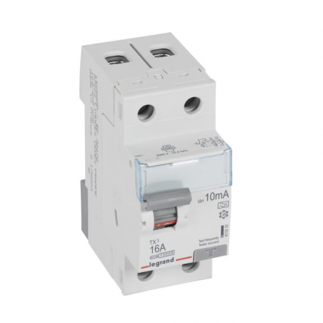 Marque: LegrandRéférence CME: LG411910EAN: 3414970354396Description: Interrupteur différentiel TX³ 2P 10mA 16A Type A - 2 modules - convient pour des installations domestiques