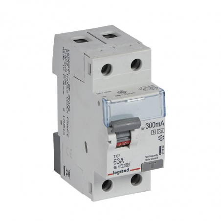 Marque: LegrandRéférence CME: LG411928EAN: 3414970354167Description: Interrupteur différentiel TX³ 2P 300mA 63A Type A-S - 2 modules - convient pour des installations domestiques