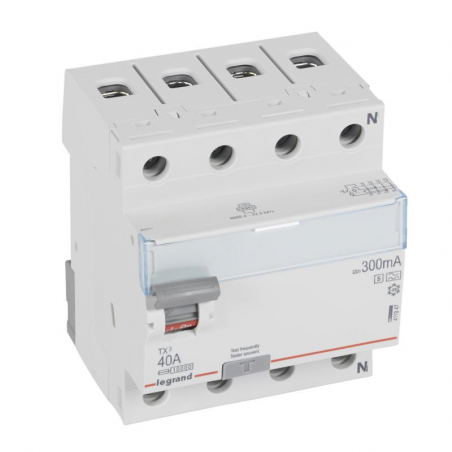 Marque: LegrandRéférence CME: LG411947EAN: 3414970354341Description: Interrupteur différentiel TX³ 4P 300mA 40A Type A-S - 4 modules - convient pour des installations domestiques