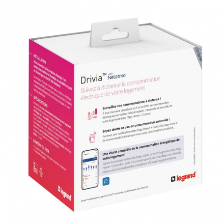 Marque: LegrandRéférence CME: LG412015EAN: 3414971510180Description: Compteur d'énergie mono 80A connecté with Netatmo - 1 mod
