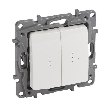 Marque: LegrandRéférence CME: LG664514EAN: 3414970607591Description: Niloé commandes multi-fonctions double lumineux à griffes blanc
