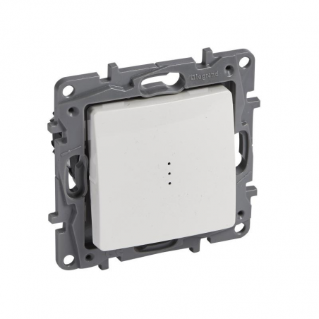 Marque: LegrandRéférence CME: LG664524EAN: 3245066645247Description: Niloé poussoir à voyant 6A 250V NO-NF blanc à griffes