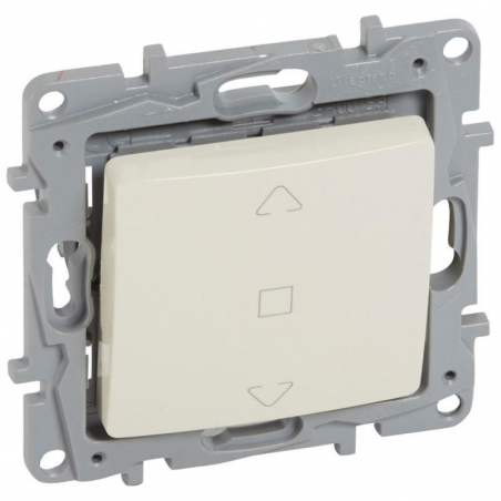 Marque: LegrandRéférence CME: LG664611EAN: 3245066646114Description: Niloé interrutpeur de volets roulants - 3 positions ""montée- stop - descente"" - à griffes - crème