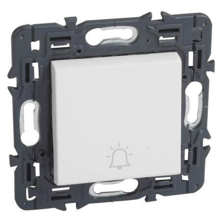 Marque: LegrandRéférence CME: LG741258EAN: 3414971771635Description: Valena Next poussoir + symbole sonnerie 6A - appareil complet - blanc- support à vis