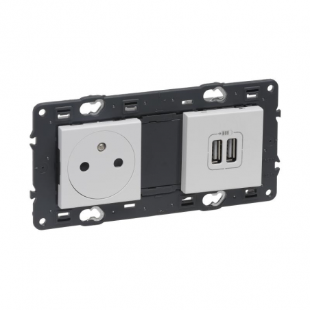 Marque: LegrandRéférence CME: LG741535EAN: 3414971276079Description: Valena Next prise 2P+T + double USB appareil complet affleurant blanc à vis