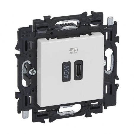 Marque: LegrandRéférence CME: LG741539EAN: 3414972510295Description: Valena Next chargeur USB type C - 45W - Power Delivery - appareil complet à griffes - fintion blanche