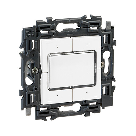 Marque: LegrandRéférence CME: LG741553EAN: 3414971276499Description: Valena Next poussoir 4 boutons électroniques compacte appareil complet blanc à griffes