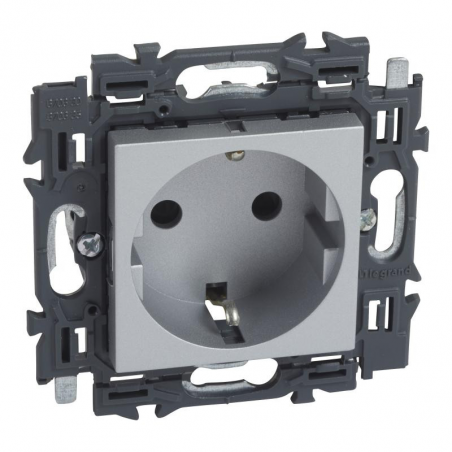 Marque: LegrandRéférence CME: LG741625EAN: 3414971876286Description: Valena prise 2P+T allemande 16A appareil complet alu à griffes