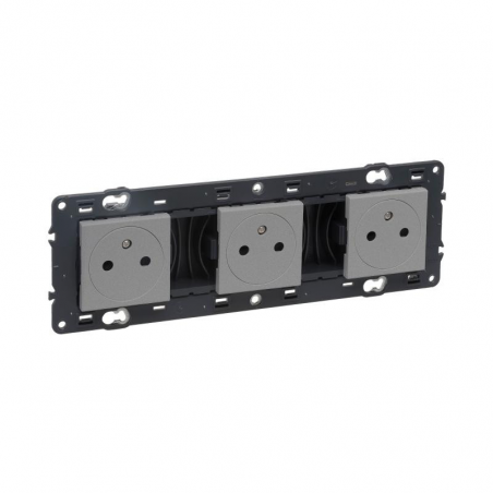 Marque: LegrandRéférence CME: LG741633EAN: 3414971277083Description: Valena Next prise 3x2P+T précâblée affleurante appareil complet alu à vis