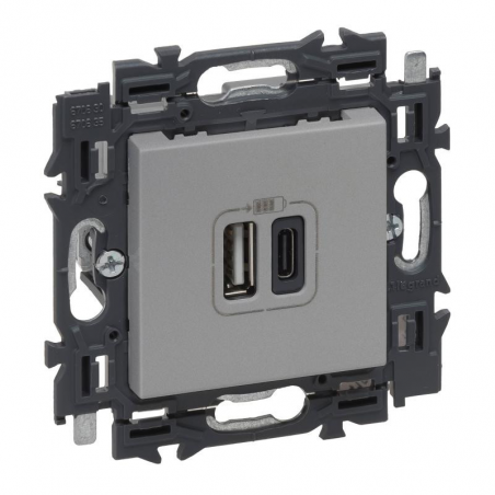 Marque: LegrandRéférence CME: LG741636EAN: 3414971277175Description: Valena Next prise USB double type A+C appareil complet alu à griffes