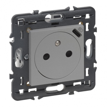 Marque: LegrandRéférence CME: LG741637EAN: 3414971463851Description: Valena Next prise 2P+T + chargeur USB 1100mA intégré appareil complet alu à griffes