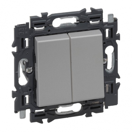 Marque: LegrandRéférence CME: LG741649EAN: 3414971277465Description: Valena Next double poussoir 6A appareil complet alu à griffes