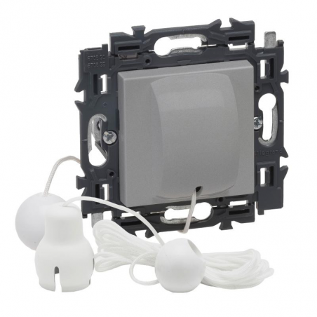 Marque: LegrandRéférence CME: LG741652EAN: 3414971277533Description: Valena Next poussoir à tirage 6A appareil complet alu à griffes