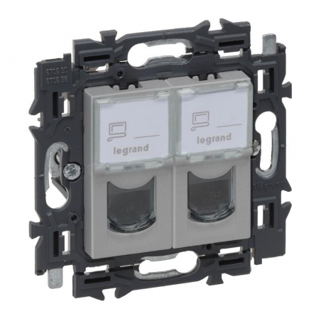 Marque: LegrandRéférence CME: LG741671EAN: 3414971277809Description: Valena Next prise 2xRJ45 cat6 UTP appareil complet alu à griffes