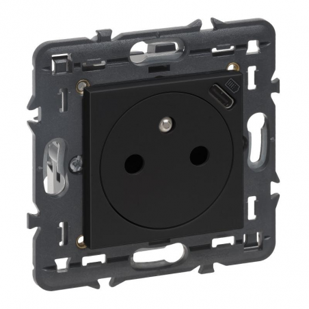 Marque: LegrandRéférence CME: LG741737EAN: 3414971463882Description: Valena Next prise 2P+T + chargeur USB 1100mA intégré appareil complet noir à griffes