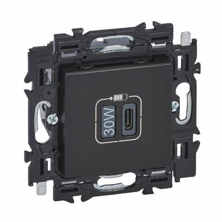 Marque: LegrandRéférence CME: LG741738EAN: 3414972057653Description: Val chargeur USB 30W power del app. complet noir à griffes