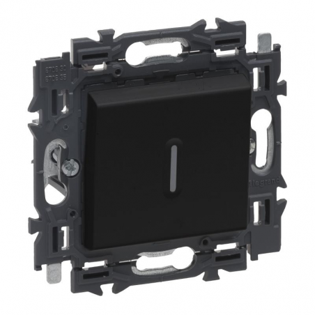 Marque: LegrandRéférence CME: LG741741EAN: 3414971278301Description: Valena Next deux dir. à voyant 10AX appareil complet noir à griffes