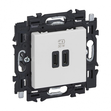 Marque: LegrandRéférence CME: LG741970EAN: 3414972510417Description: Valena Next double chargeur USB type C - 30W - Power Delivery - appareil complet à griffes - fintion blanche