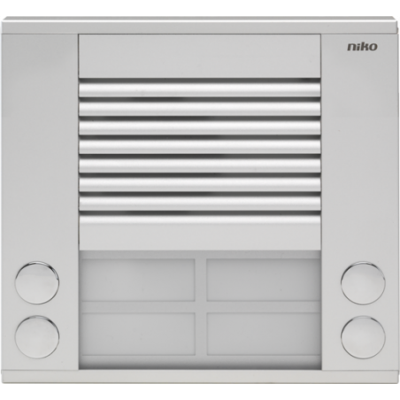Marque: NikoRéférence CME: N10104EAN: 5413736161092Description: Poste extérieur pour montage en saillie 20 mm avec 4 sonnettes, en deux rangées