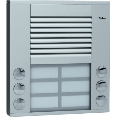 Marque: NikoRéférence CME: N10106EAN: 5413736161108Description: Poste extérieur pour montage en saillie 20 mm avec 6 sonnettes, en deux rangées