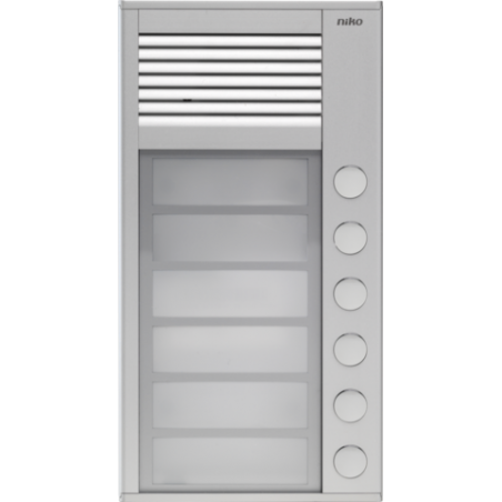 Marque: NikoRéférence CME: N10156EAN: 5413736162372Description: Poste extérieur pour montage en saillie 16 mm avec 6 sonnettes
