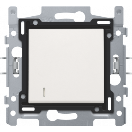 Marque: NikoRéférence CME: N10160008EAN: 5413736348981Description: Bouton-poussoir N.O. avec 3 bornes, socle, bornes à connexion rapide et set de finition avec voyant couleur white