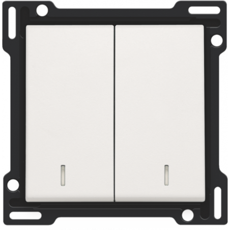 Description: Set de finition avec double voyant pour interrupteur double allumage, interrupteur va-et-vient + bouton-poussoir N.O., interrupteur va-et-vient double ou bouton-poussoir double N.O. ou N.F., couleur white