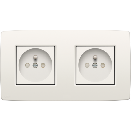 Description: Prise de courant double horizontale avec broche de terre et obturateurs de protection, bornes à vis, profondeur dencastrement de 28,5 mm, y compris plaque de recouvrement, couleur white