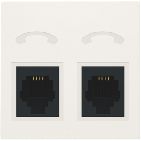 Description: Set de finition pour prise téléphonique avec 2 connecteurs RJ11 en parallèle, pour encastrement dans des goulottes d'installation ou un appareillage étanche