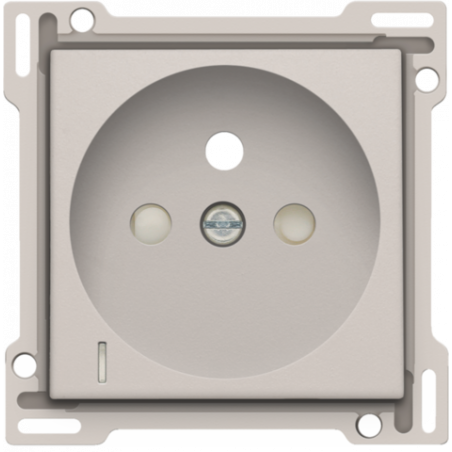 Description: Set de finition avec voyant transparent pour prise de courant avec indication de tension, broche de terre et obturateurs de protection, profondeur d'encastrement de 28,5 mm, couleur light grey